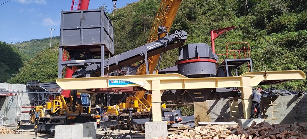 Основные машины для производства песка (такие как ударные, молотковые и двухвалковые дробилки) интегрированы с подающим устройством, виброситом, конвейерной лентой и другим вспомогательным оборудованием на одном мобильном шасси, образуя законченный мобильный агрегат.