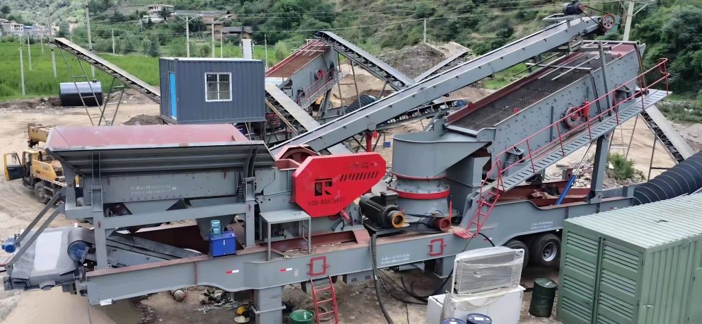 Мобильная Машина для производства песка (Мобильная vsi дробилка): используется для производства песка и оптимизации формы частиц, может производить искусственный песок с размером 0-5 мм, готовый продукт преимущественно имеет кубическую форму; подходит для сценариев, где высокие требования к форме частиц материала.